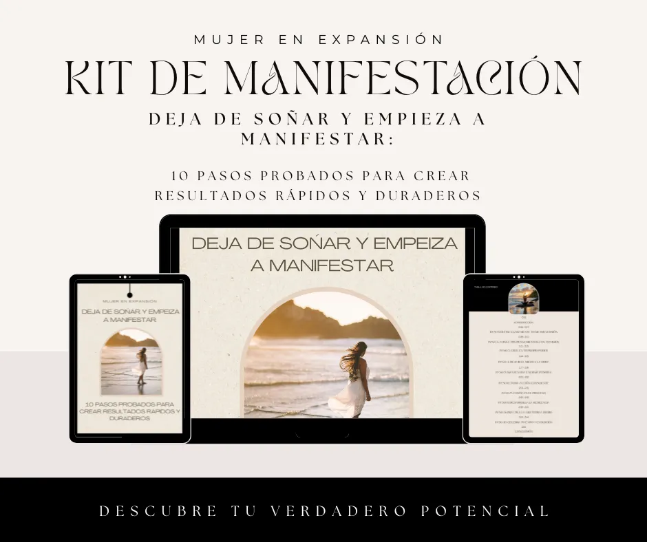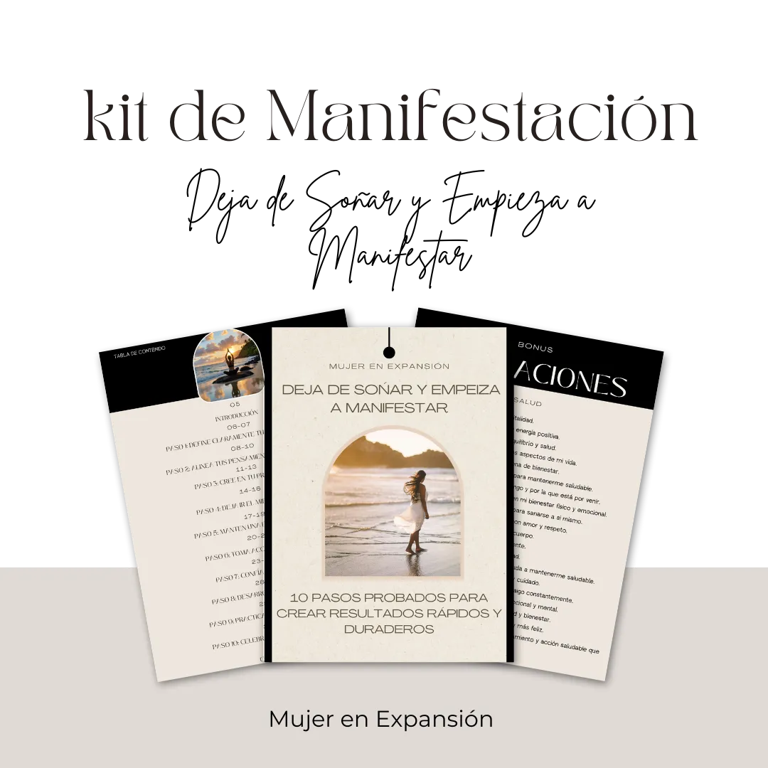 Cuando adquieras tu Kit de Manifestación recibirás por correo electrónico un Ebook de 38 páginas de alto valor dividido en 10 pasos para alinear tu mente, energía y acciones con tus deseos: